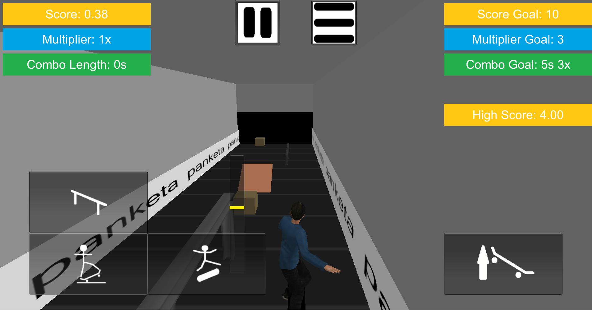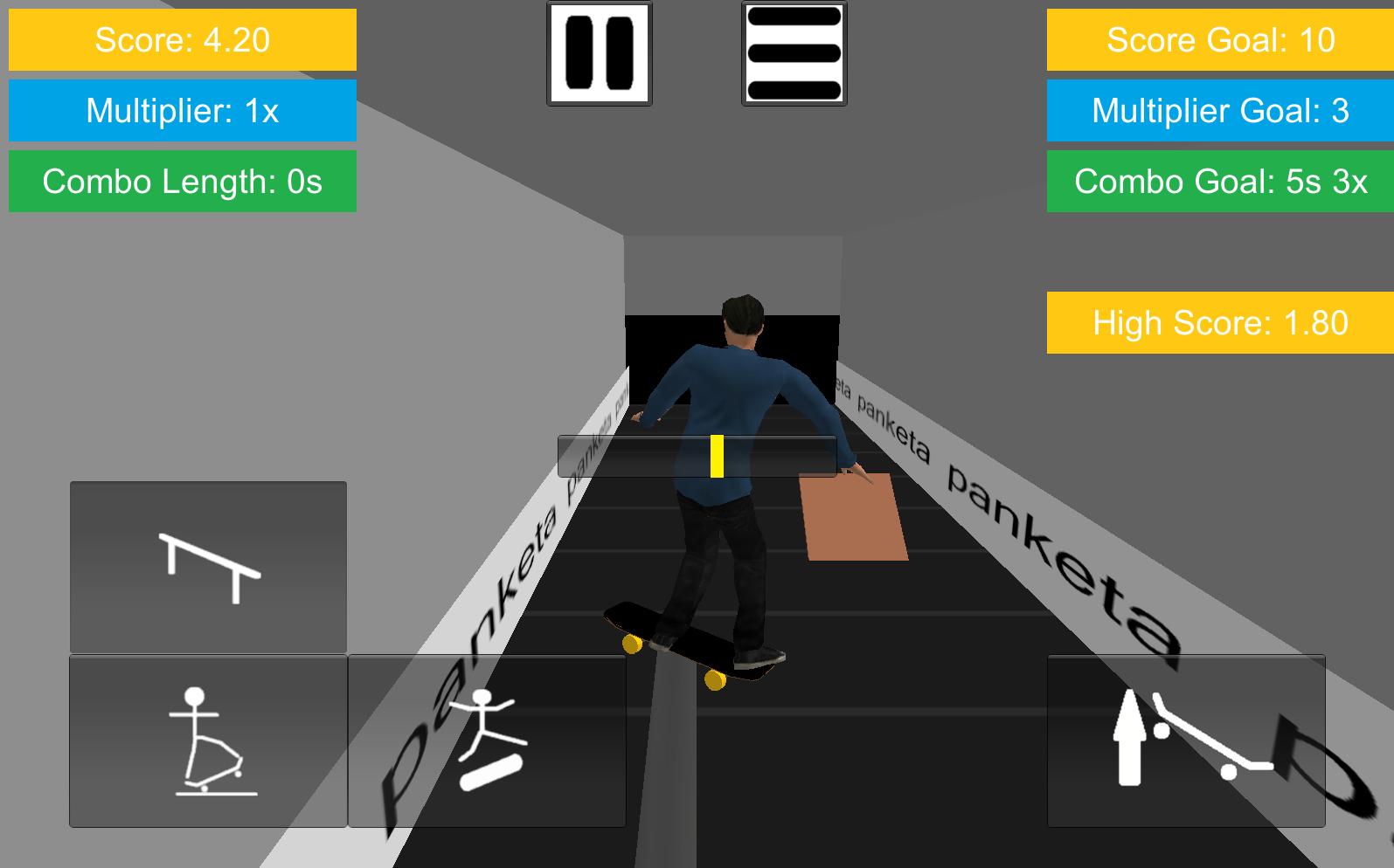Patinez sur une courroie de convoyeur chargée d'objets aléatoires pour effectuer des astuces. Gardez votre équilibre pendant ou broyant les rails, effectuez des flips de coup de pied, esquivez les boîtes et effectuez des manuels pour fabriquer de longs combos et générer des scores élevés.